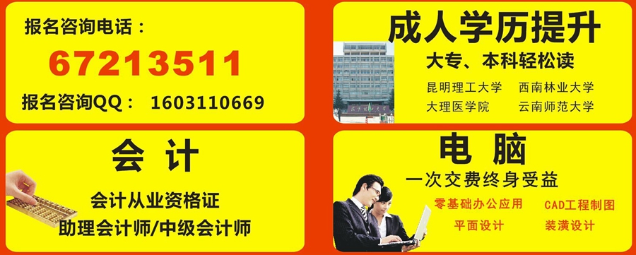 6、成人學(xué)歷提升報(bào)名:西南林業(yè)大學(xué)、大理醫(yī)學(xué)院、云南師范大學(xué)、昆明理工大學(xué)。