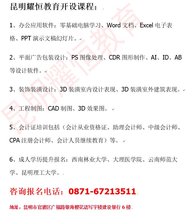 [日期:2015-08-10] 來源:昆明耀恒教育 作者:昆明耀恒教育 閱讀:2619次