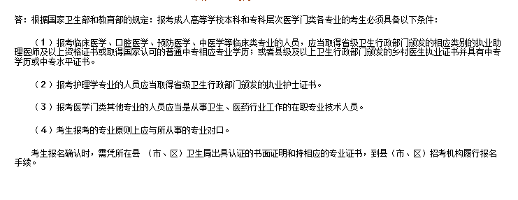 2015年成人高考報考西醫(yī)類高等本科專業(yè)醫(yī)學類專業(yè)需要什么條件?